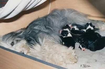 | Ginger schenkte uns 4 wundervolle Würfe mit insgesamt 32 Welpen. Aus unserem G-Wurf im Jahre 2000, behielten wir eine Tochter von ihr, unsere LUCY (Glamour Lucy von der Old´n Aue) | ![]() |