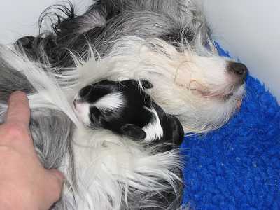 Aus dem ersten Wurf bei den "Jumping Joy´s" hatte ich ursprünglich, anhand von Fotos, eine ganz andere Hündin im Auge. Aber als ich diese süße Stupsnase hier zum ersten Mal im Original sah, war es sofort um mich geschehen. Es gab keine Zweifel, dieses "Amina Schlupferle" sollte es sein! So schwarz wie die Nacht und das Weiß so strahlend wie der Mond, deshalb kam Klein Amina zu ihrem Namen LUNA.